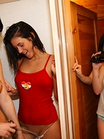 Back to main page. Gallery title: Girls rubbing their soaked teen muffs on the toilet seat